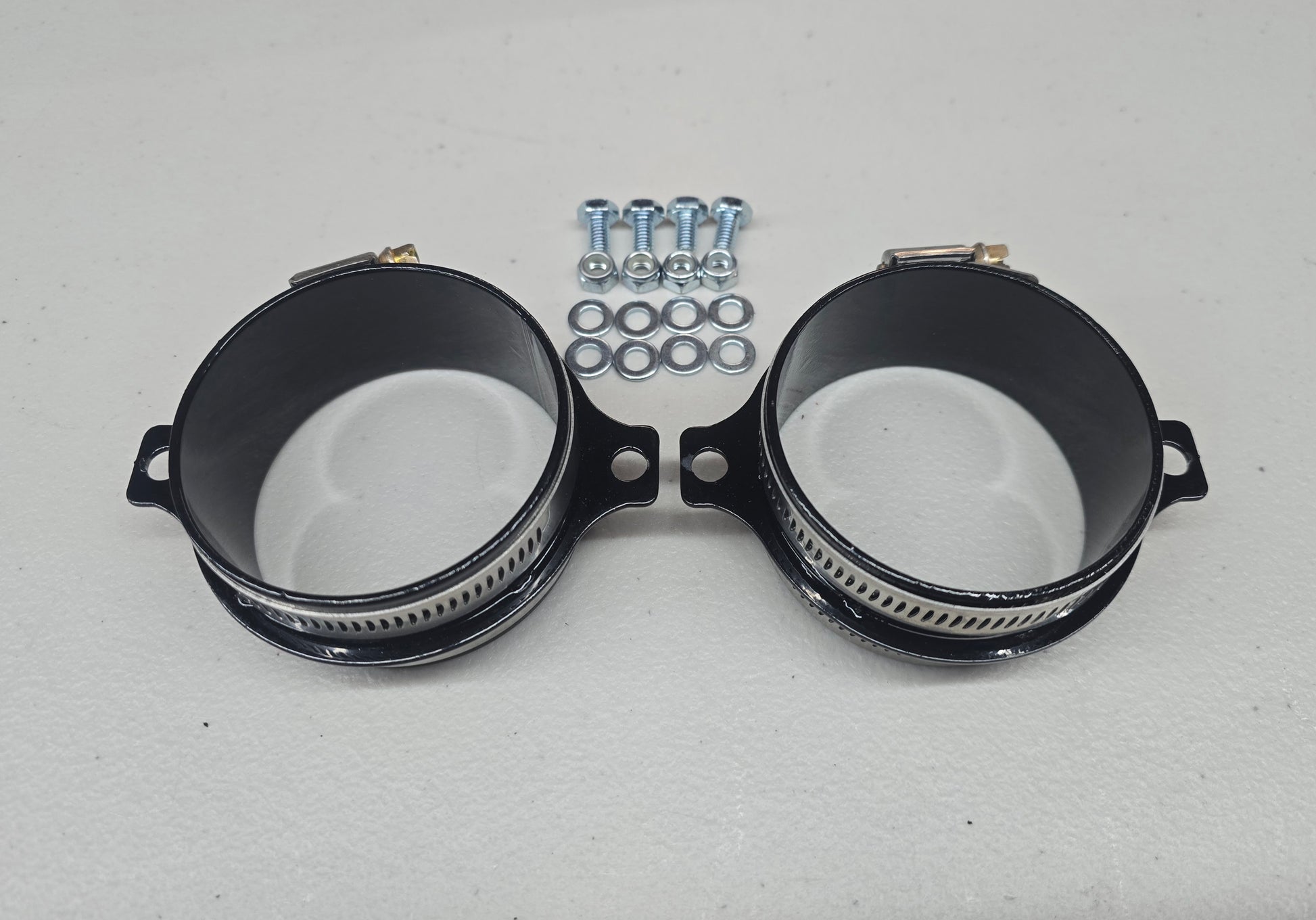 These exclusive components have the added benefit of allowing quick hose connection at the track and quick removal for fresh air ducting while driving on the street. Relatively simple mounting to the fender liner provides a convenient point from which to disconnect your brake cooling ducts, allowing for increased steering range on the street and easing service.