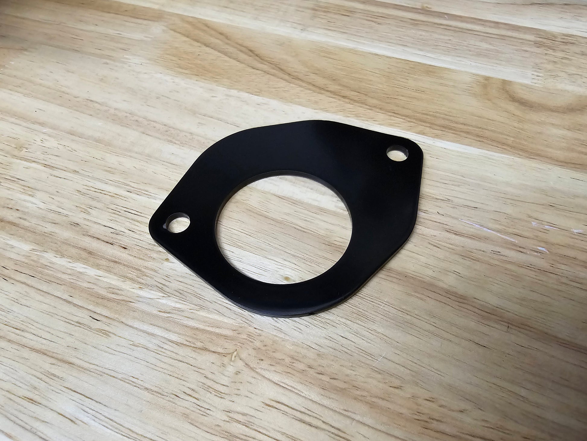 When upgrading to a z3 , e36 m3, or e46 steering rack on your late model (airbag) e30s you will need to move the steering shaft hole just slightly. This plate serves as a template of where to trim and can be used to clap down on the factory weather stripping to prevent elements from entering the cabin.